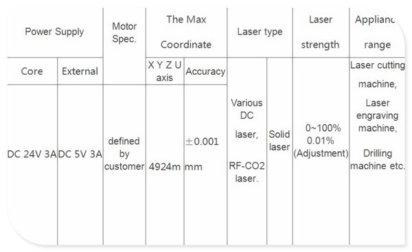 5. pode cumprir 4 eixo ' Controle (x y de controle de laser, Z é levantar eixo, U está alimentando eixo, Eles são também podem ser feitos sob encomenda flexibilidade) ligar os vários sistema de acionamento do motor, e pode controlar servo, pisando etc movimento organização.